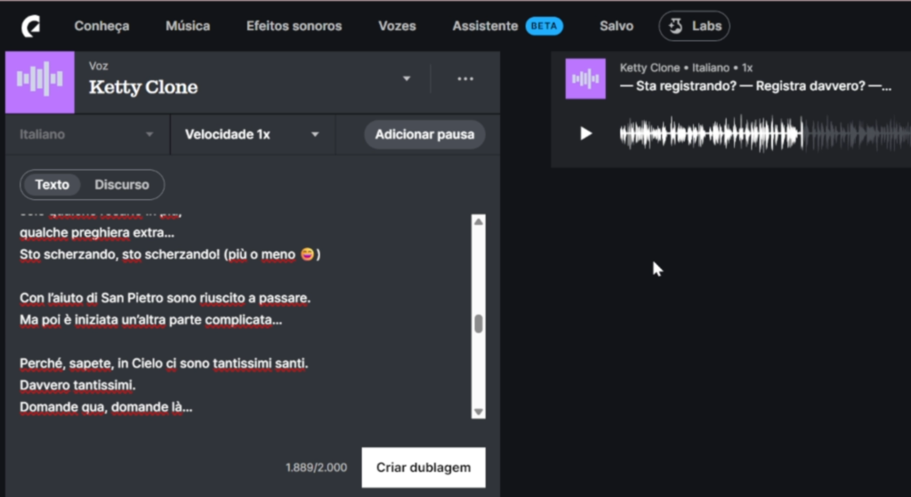 A voz utilizada no vídeo está em italiano e foi gentilmente emprestada pelo padre Domênico, da Congregação Xavieriana. Essa colaboração ajudou a dar ainda mais realismo e profundidade à recriação.